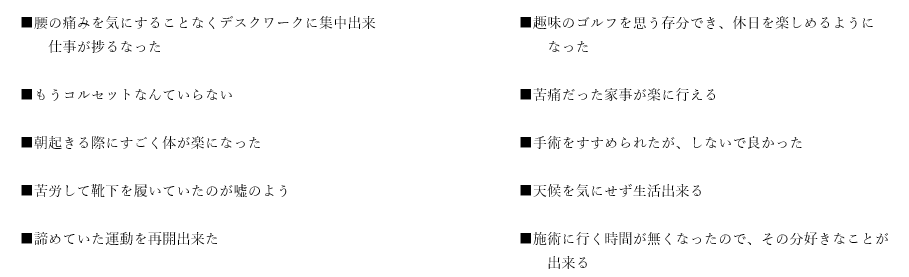 もっと早く施術を受けていれば良かった・・・と多くのお客様に感謝頂いております。