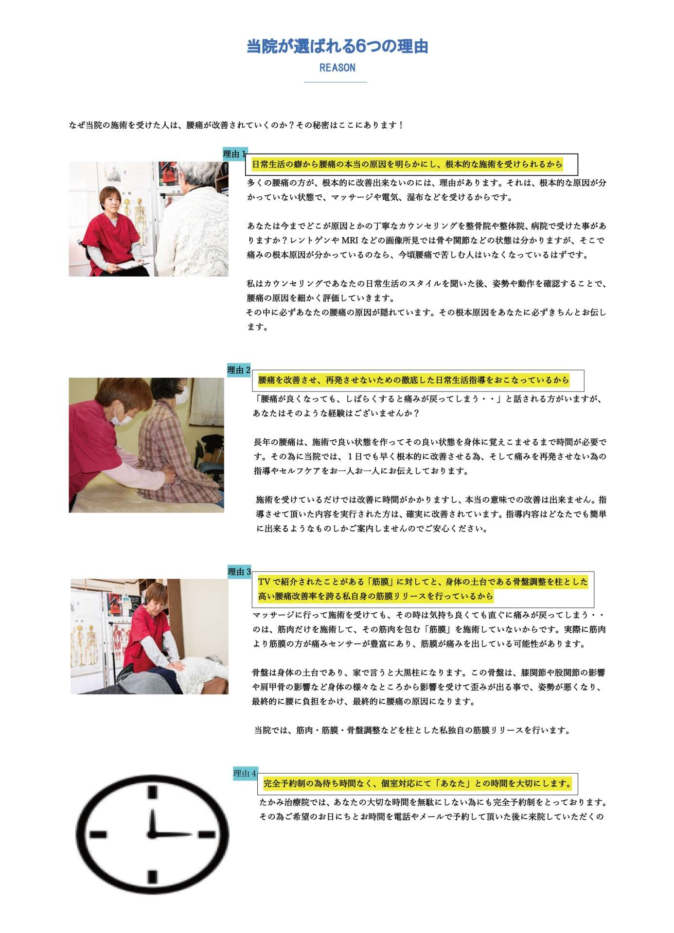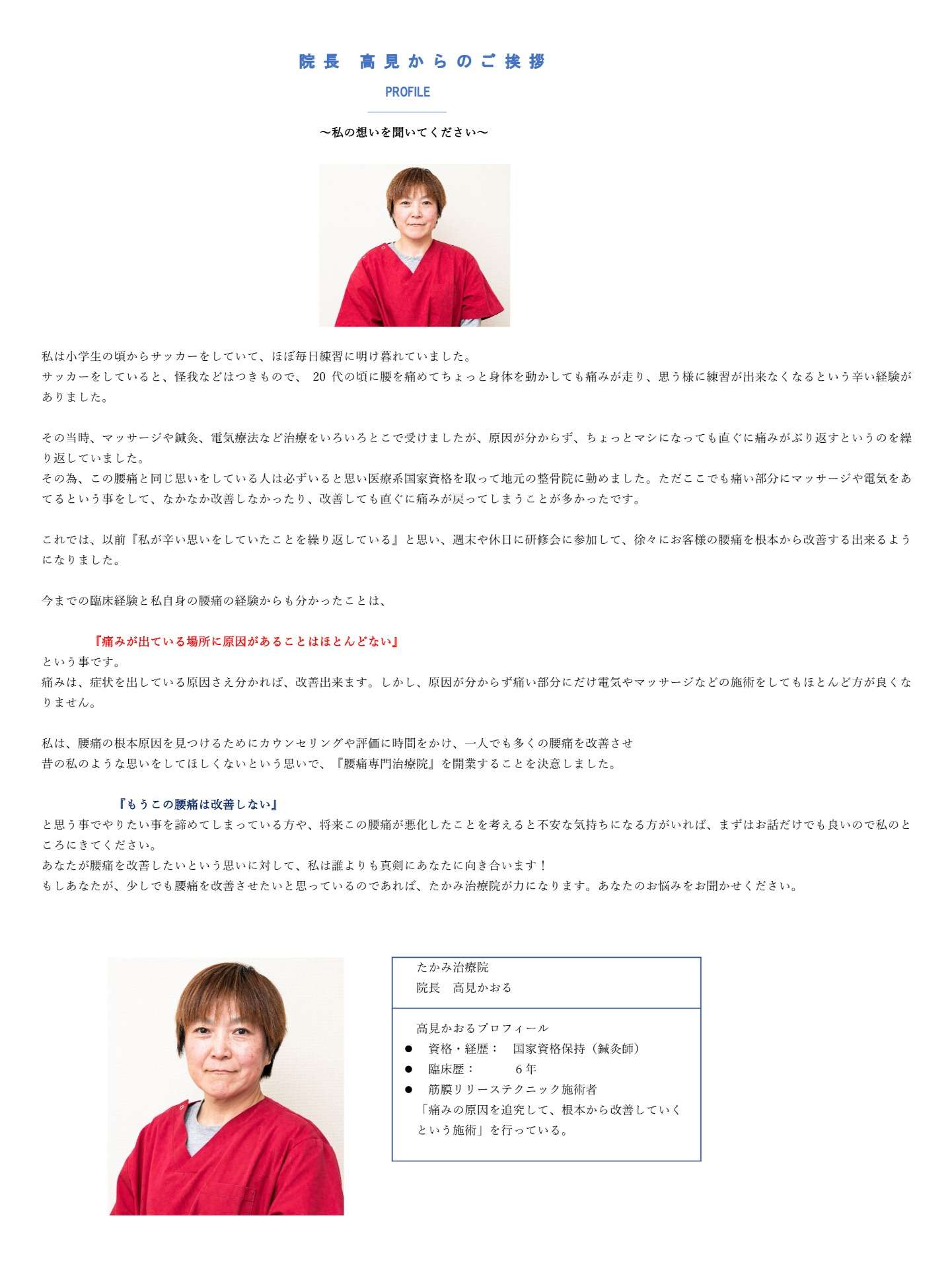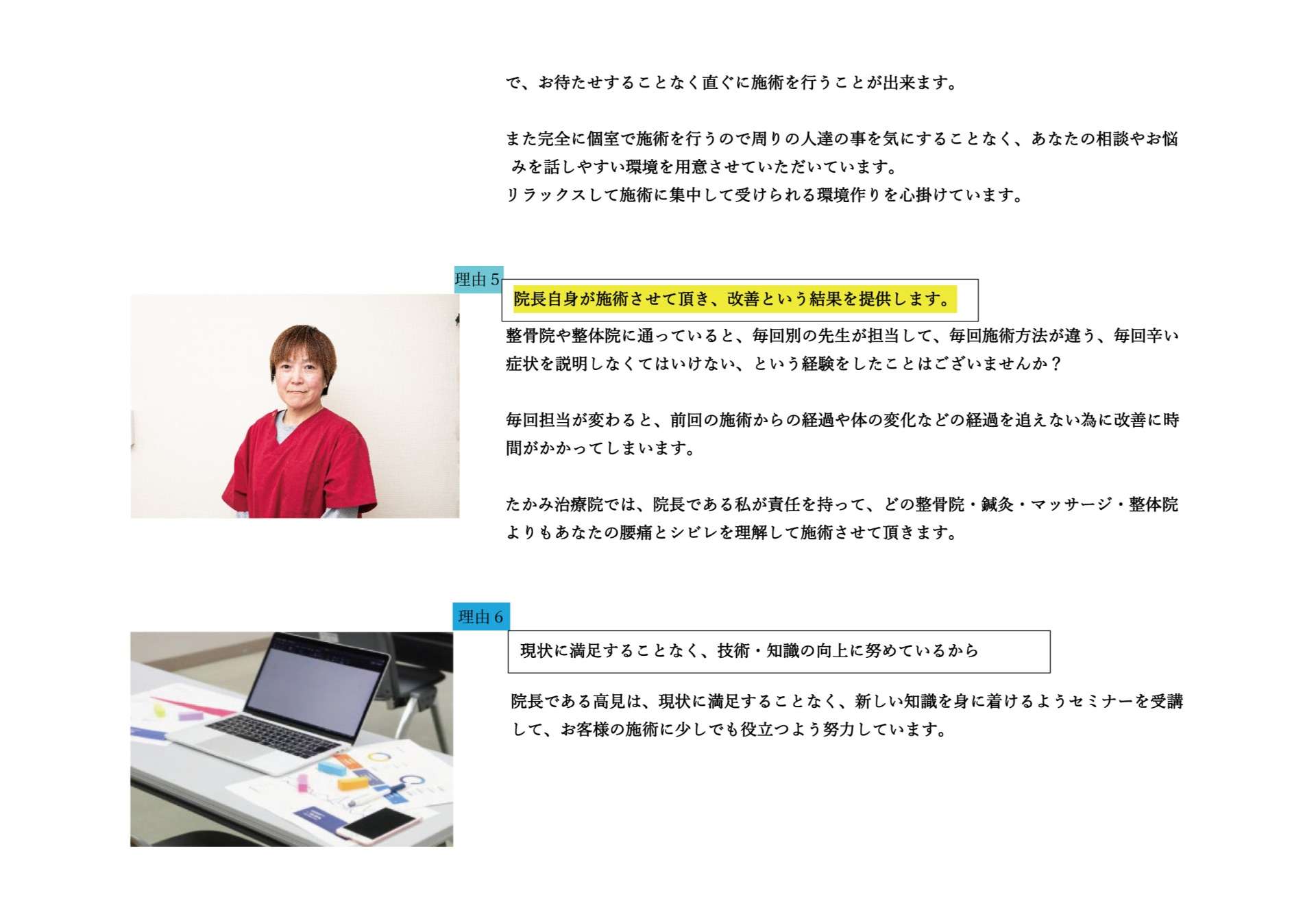 たかみ治療院では、院長である私が責任を持って、どの整骨院・鍼灸・マッサージ・整体よりもあなたの腰痛と痺れを理解して施術させて頂きます。