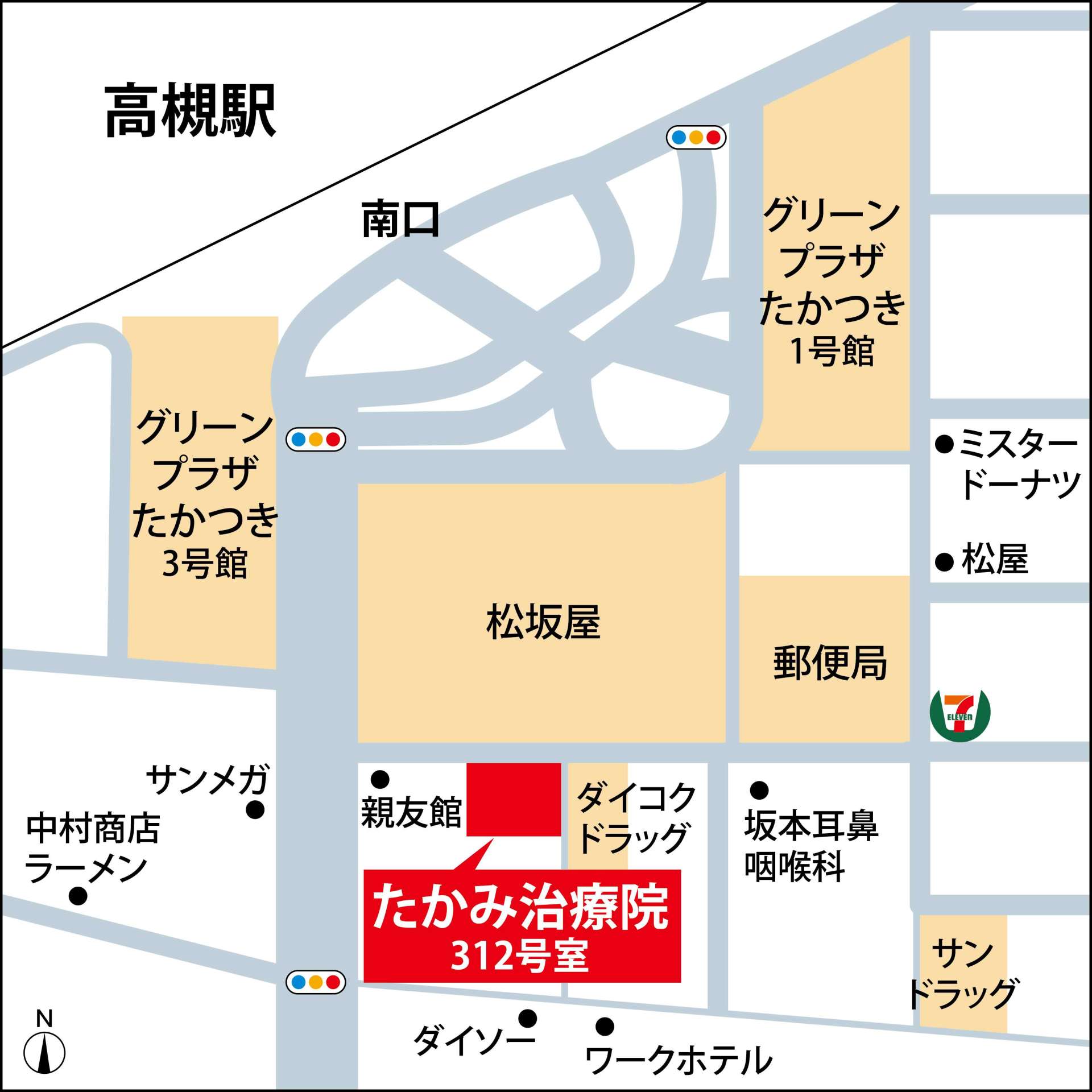 高槻のたかみ治療院はJR高槻駅から徒歩約3分でアクセスしやすい立地です