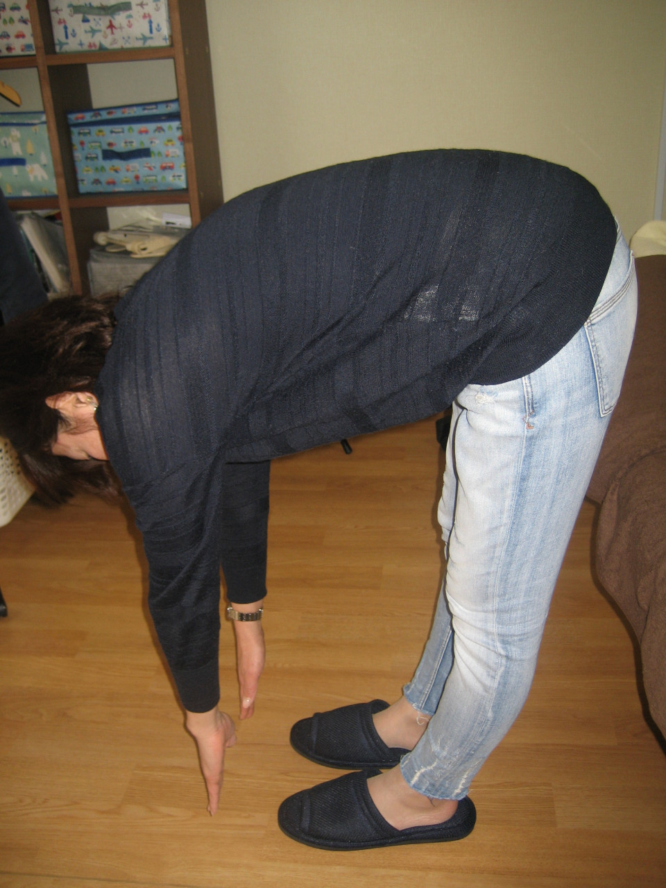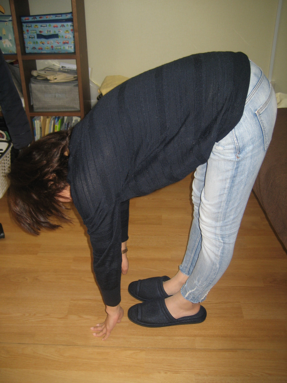 足と腰の痛み 2019/03/15 腰から下の痛み ヒールを履いて足が痛い ビフォー 娘さんの卒業式でヒールを履いて行かれて、腰から下が痛くなったそうです。前屈をしてもらうと、治療の前は、床のちょっと手前まででした。背中の辺りも前屈しにくそうな感じですね。 アフター 治療後は、床までしっかり指が付いています。腰から足にかけての痛みも無くなりました。腰からしっかりと前屈出来てます。